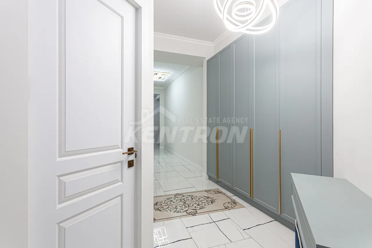 Բնակարանը գտնվում է 18 հարկանի պրեմիում դասի նորակառույց շենքի 5րդ հարկում, ընդանուր մակերեսը 123քմ է 3 սենյակ։ Լուսավոր և ընդարձակ հյուրասենյակը ապահովում է հարմարավետություն թե առօրյա, թե՛ հյուրերի ընդունման համար հյուրասենյակից դուրս եք գալիս դեպի մեծ բաց պատշգամբ, որտեղից բացվում է հիասքանչ տեսարան դեպի ձոր և քաղաքի համայնապատկեր։ Առկա է երկու ննջասենյակ որոնցից յուրաքանչյուրն ունի իր առանձին սանհանգույցն ու լոգարանը, նախասրահում առկա է ևս մեկ սանհանգույց հյուրերի համար։ Խոհանոցը բավականին հարմար չափերի է և հագեցած է անհրաժեշտ կահույքով և տեխնիկայով։ Շենքն ունի շուրջօրյա անվտանգություն, բարեկարգ խաղահրապարակ երեխաների համար։