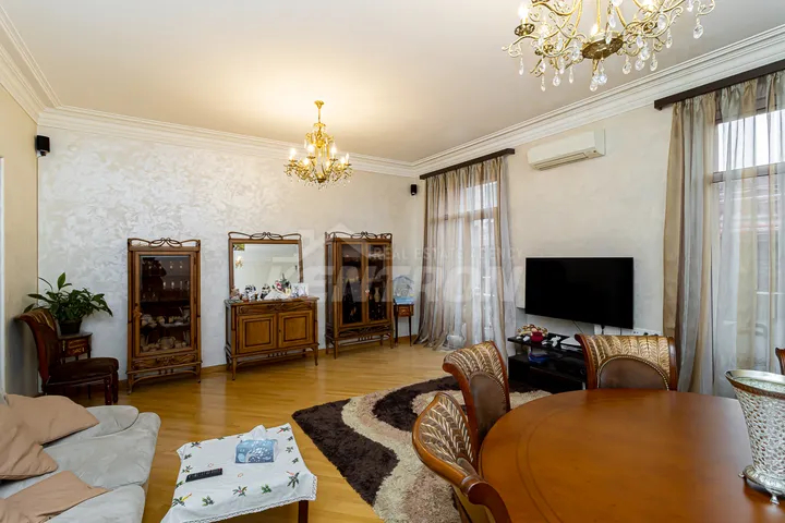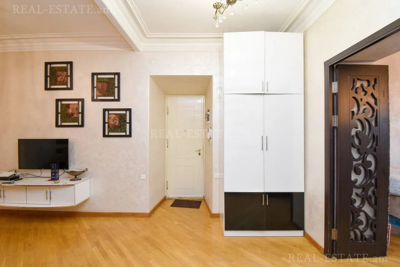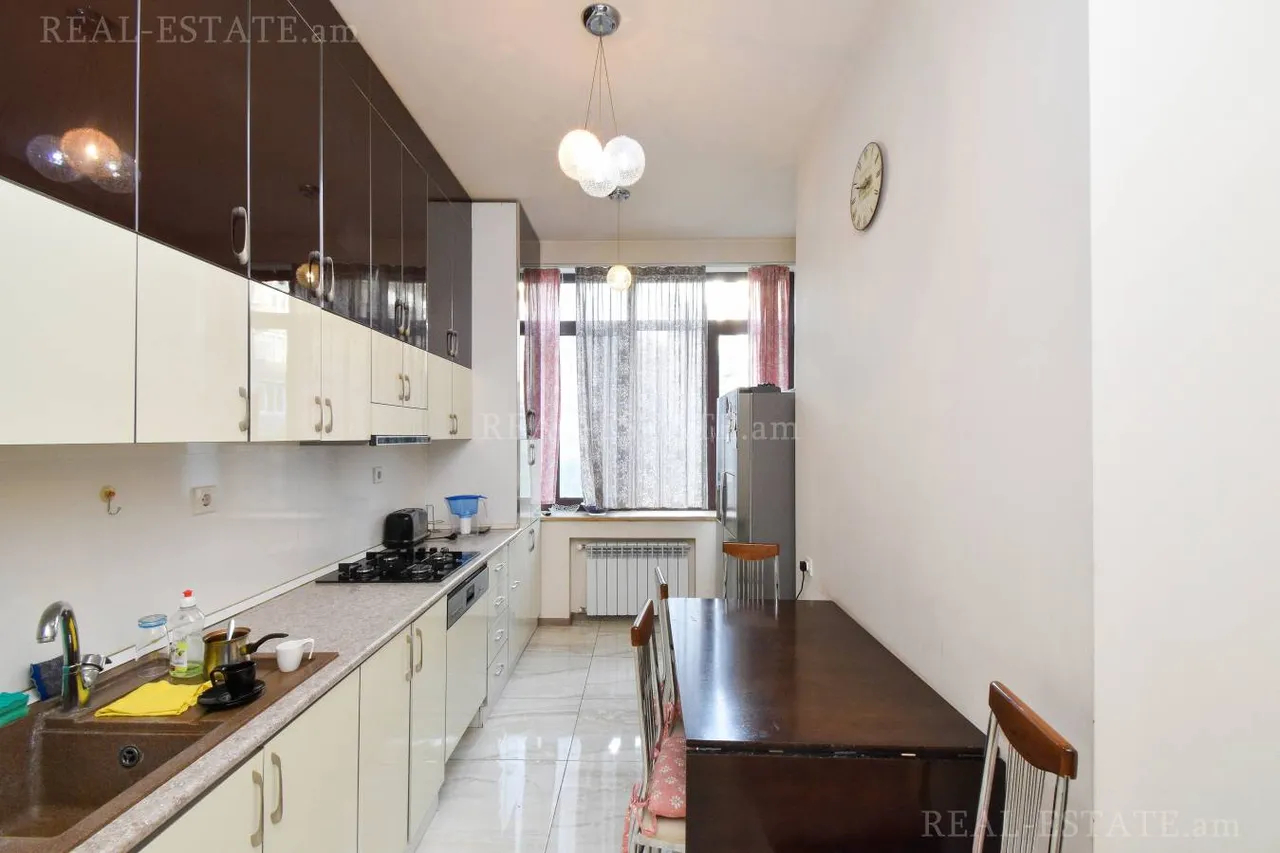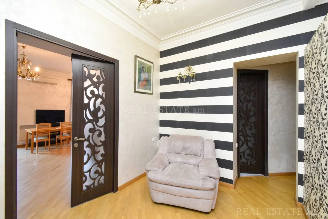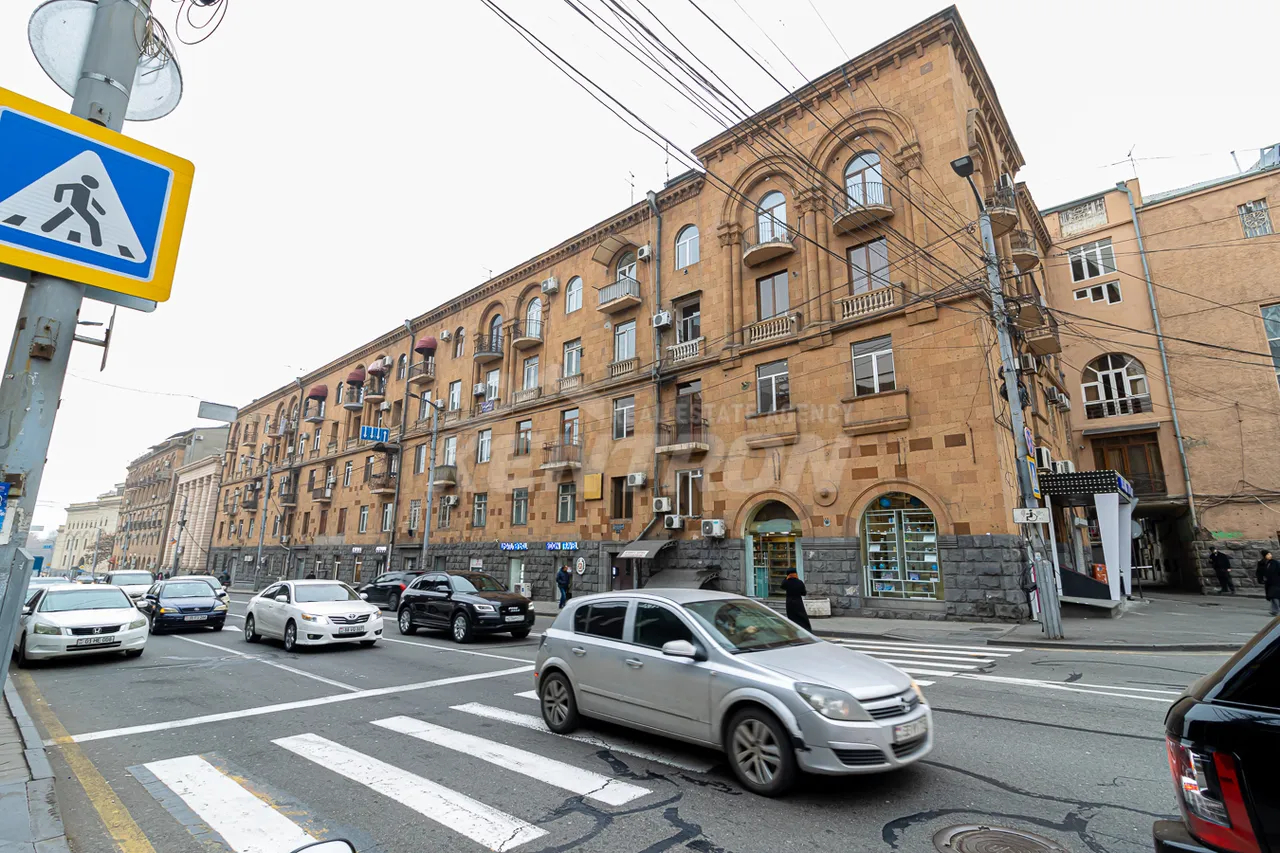Հանրապետության Հրապարակին կից վաճառվում է 4 սենյականոց վերանորոգված բնակարան 5 հարկանի ստալինյան նախագիծ քարե շենքի 4-րդ հարկում։ Բնակարանը ունի 2 շքապատշգամբ(ֆրանսիական)՝ գեղեցիկ տեսարան դեպի փողոց։ Ընդհանուր մակերեսը կազմում է 117քմ, ունի 3 ննջասենյակ, հյուրասենյակ, առանձին խոհանոց, 2 սանհանգույց։ Ունի երկկողմանի արևկող դիրք։ Բնակարանը վերանորոգված է և կահավորված։ Մոտակայքում է գտնվում Հանրապետության Հրապարակը, մետրոն, Վերնիսաժի այգին։