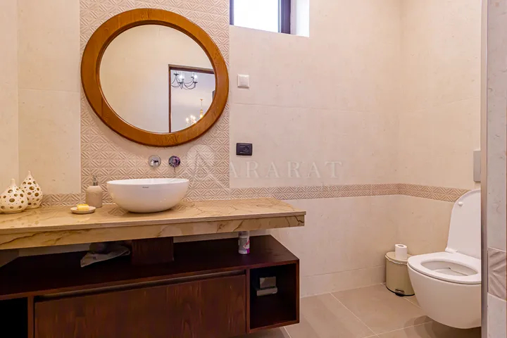 Վարձակալության է հանձնվում 2 հարկանի շքեղ առանձնատուն Բագրևանդ թաղ. : Առանձնատան հողամասը կազմում է 1.100քմ , իսկ բնակելին 617քմ : Առանձնատուն վերանորոգված է , կահավորված և չբնակեցված : Ունի բացոթյա լողավազան , ունի նաև առանձին լողավազանի համար նախատեսված ամառային խոհանոց :
