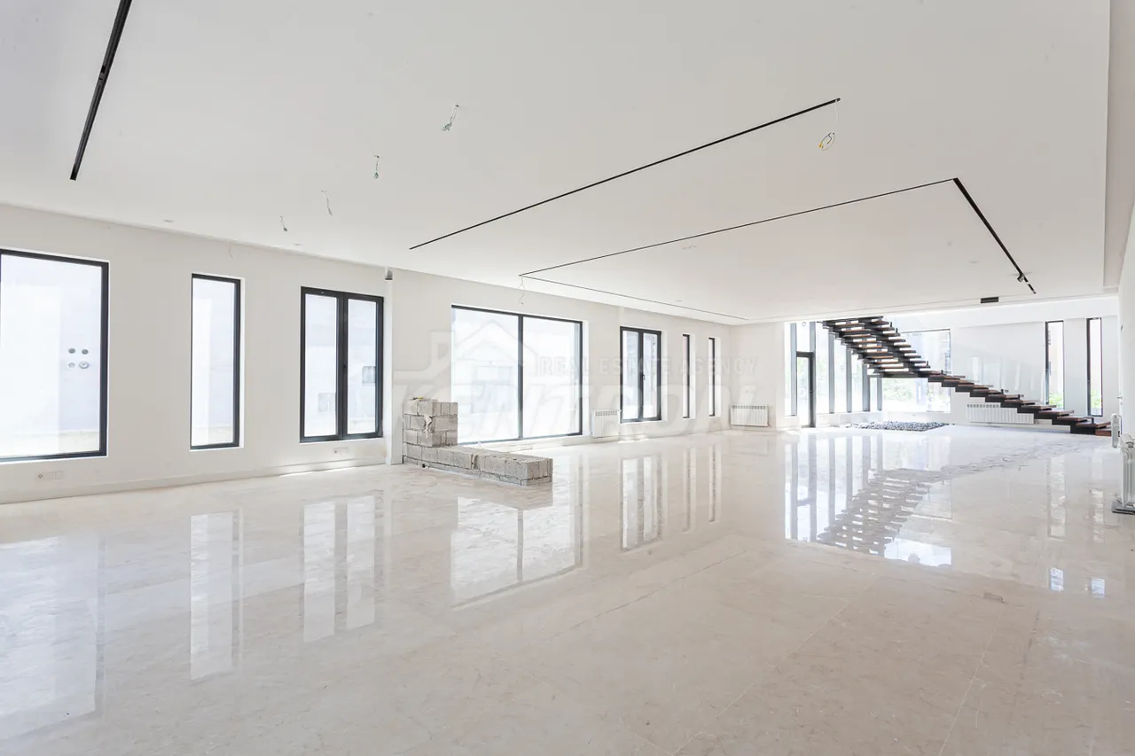Շքեղ Առանձնատուն Չբնակեցված Հողի մակերես - 1420 ք․մ Բնակելի մակերես - 1600 ք․մ, ամեն հարկ - 400 ք․մ 4 հարկ Մոդեռն վերանորոգում, վիտրաժային ապակիներ 7 ննջասենյակ, 7 սանհանգույց Առանձին խոհանոց նաև ամառային Առաստաղի բարձրություն՝ հյուրասենյակ - 7 մ, ննջասենյակներ - 3,5մ Պարկինգ - 8 մեքենայի համար նախատեսված Գույք, տեխնիկա Առկա է բաց լողավազան, ամառային խոհանոց, նկուղ Տեռասա գեղեցիկ տեսարանով երկկողմանի