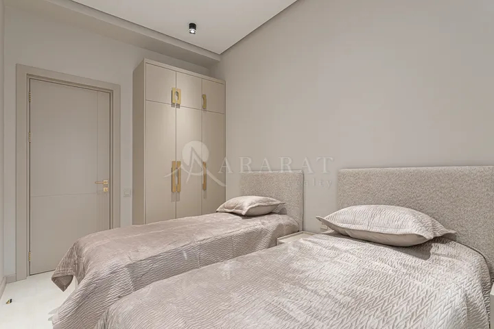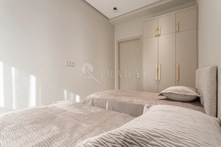 Բնակարան որը ունի երկու բաց պատշգամբ գեղեցիկ տեսարան դեպի բակ և քաղաք,արևկողմ դիրք,նորաոճ վերանորոգում։Բնակարանը հագեցած է անրհաժեշտ կահույքով և տեխնիկայով,առկա են խոհանոցի և ննջասենյակի բոլոր պարագաները։Բնակարանը չմբակեցվեծ է,հավելավճարով առկա է փակ ավտոկայանատեղի։