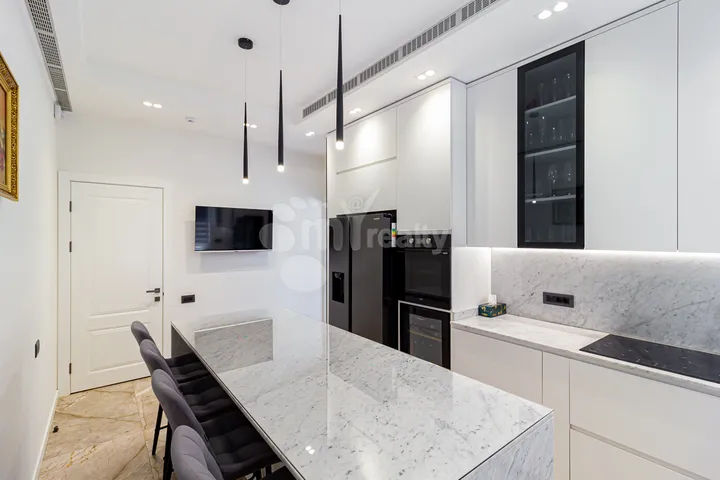 Վաճառվում է ընդարձակ 5 սենյականոց շքեղ բնակարան Վ․Փափազյան փողոցում՝ այգու հարևանությամբ։Բնակարանն ունի մոդեռն վերանորոգում,գտնվում է էլիտար 15 հարկանի նորակառույց շենքի 5րդ հարկում։Բնակարանի ընդհանուր մակերեսը կազմում է 140 ք․մ․,որը վերանորոգված է դիզայներական ոճով նրբաճաշակ գույների մեջ,կահավորված է բարձրորոակ գույք-տեխնիկայով։Բնակարանը բաղկացած է ընդարձակ հյուրասենյակից՝վիտարաժային լուսավոր պատուհաններով,ինչպես նաև հյուրասենյակում առկա է մարմարե քարերով պատված գործող բուխարի,առանձնացված ընդարձակ և լուսավոր խոհանոց՝իր մոտ գտնվող հարմարավետ աշխատասենյակ և 3 ննջասենյակ,որոնցից մեկն ունի առանձին սանհանգույց և ելք դեպի գեղեցիկ բաց պատշգամ,ինչպես նաև առկա է ընդհանուր սանհանգույց-լոգարան և լվացքասենյակ։