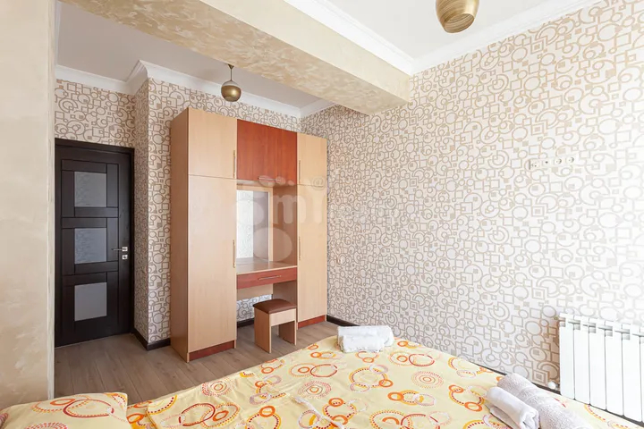 Վարձակալության բնակարան Մաշտոցի պողոտայում: Բնակարանը նորակառույց շենքում է, ունի անվտանգություն, 2 վերելակ, մուտքերը սպասրկվում են շուրջօրյա: Բնակարանը արևկողմ է, ունի 2 ննջասենյակ, հյուրասենյակ խոհանոցի հետ միասին, 2 սանհանգույց, բաց պատշգամբ և բնակարանի բոլոր պատոհանները վիտրաժային են: