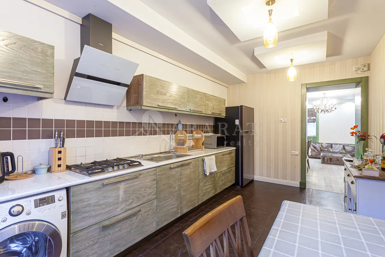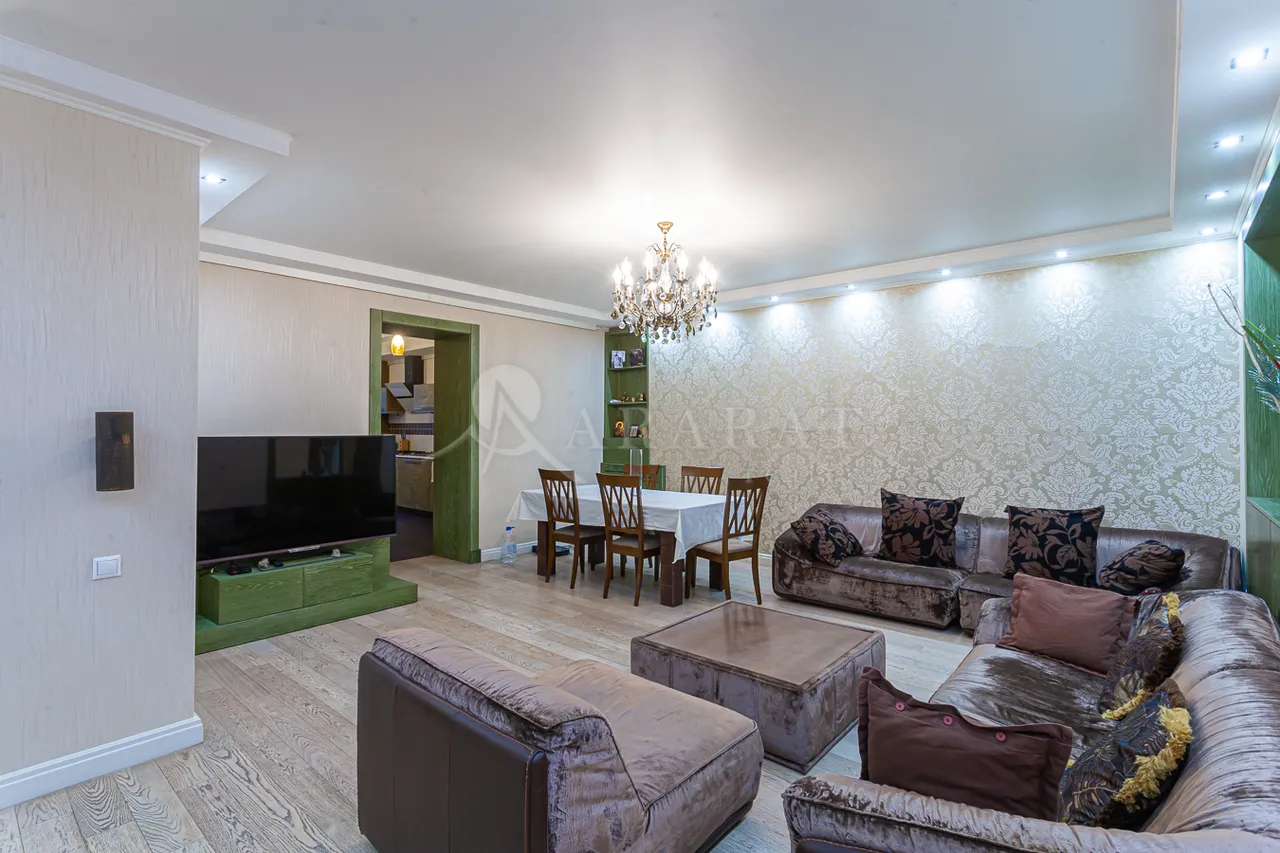 Վաճառվում է 110 ք․մ բնակարան Սայաթ Նովա պողոտայում քարե շենքի 3-րդ հարկում, բնակարանը երկկողմանի է, կապիտալ վերանորոգված է վաճառվում է մասնակի կահույքով ունի բաց պատշգամբ։