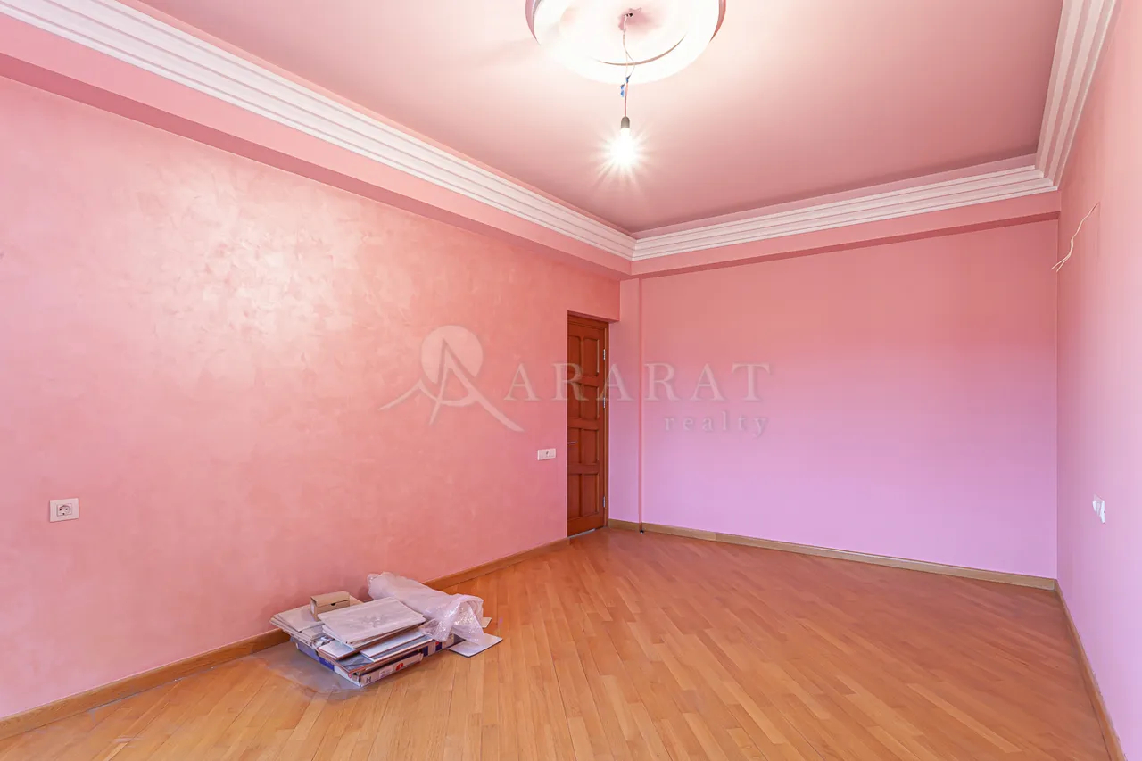 Վաճառվում է 4 սենյականոց ընդարձակ բնակարան փոքր կենտրոնում՝ Տերյան փողոցում,որը գտնվում է 7 հարկանի նորակառույց շենքի 5րդ հարկում։Բնակարանը կապիտալ վերանորոգված է, ընդհանուր մակերեսը կազմում է 165 ք.մ.,որը բաղկացած է հյուրասենյակից,խոհանոցից,3 ննջասենյակից,2 սանհանգույցից։Բնակարանն ունի ստորգետնյա ավտոկայանատեղի հավելավճարով։