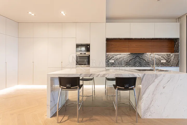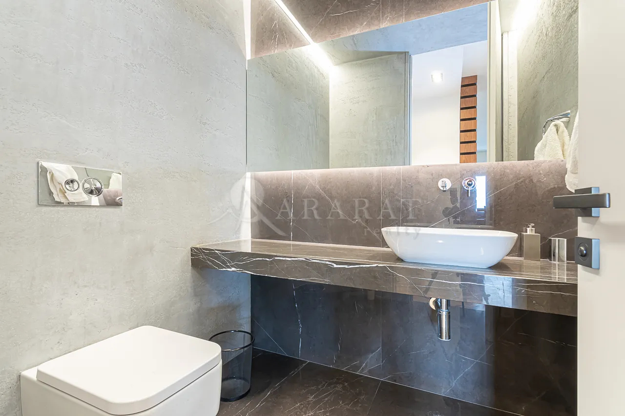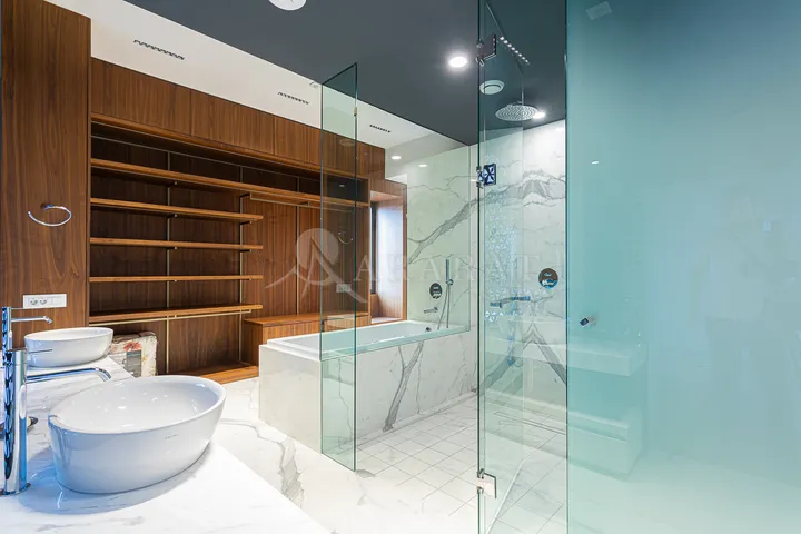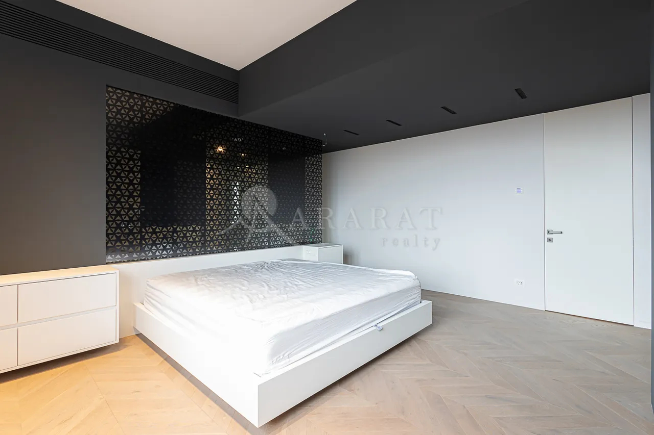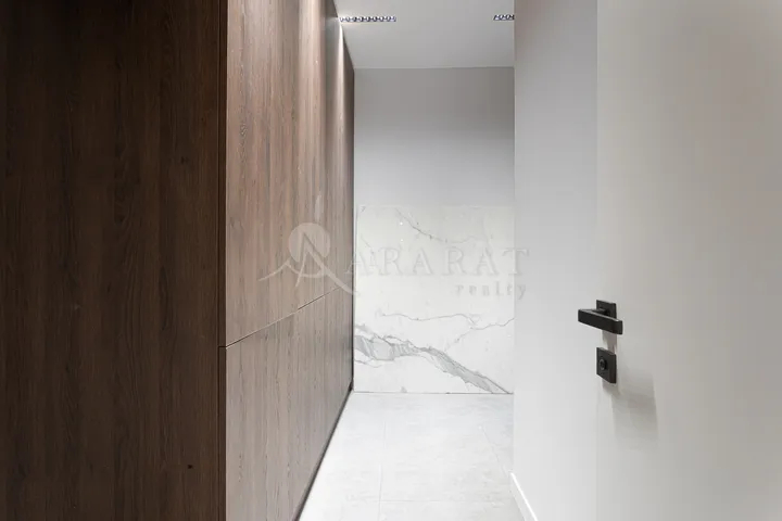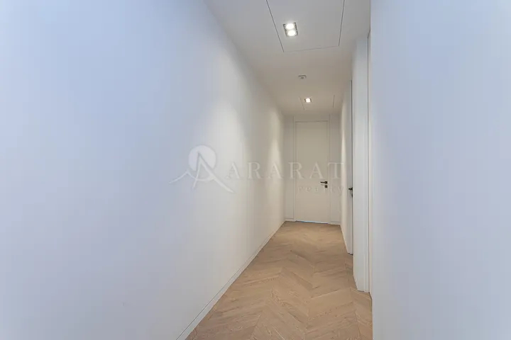 Продаётся квартира премиум-класса в малом центре, в жилом/бизнес-комплексе Пушкин 25.Квартира расположена на 18-м этаже 20-этажного элитного здания.Общая площадь квартиры составляет 196 кв.м. Квартира отремонтирована в современном дизайнерском стиле и полностью меблирована высококачественной мебелью и техникой.Квартира имеет угловое южное расположение и панорамный балкон с великолепным видом на гору Арарат и Площадь Республики. Из двух спален открывается прекрасный вид на гору Арагац.Квартира не заселена, полностью оснащена системой Смарт-Хом и управляется с помощью голосовых команд через устройство Гугл или любого другого умного голосового помощника (включение и выключение освещения и другие функции).Планировка включает: просторную гостиную, объединённую с кухней и выходом на панорамный балкон, 3 мастер-спальни, в каждой из которых установлены отдельные кондиционеры и отопительные приборы, а температура в каждой комнате регулируется индивидуально, прачечную и санузел для гостей.Продажа осуществляется вместе со всей имеющейся в квартире мебелью и техникой.К квартире прилагается подземное парковочное место, стоимость которого включена в общую цену. Также имеется отдельное помещение для хранения шин и необходимых вещей. Здание оснащено круглосуточной системой безопасности, высококлассными лифтами, центральным отоплением, постоянным водоснабжением, электричеством и интернетом.