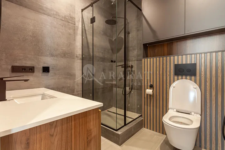 Предлагается к продаже просторная 4-комнатная квартира в центре Еревана, на улице Арами. Недвижимость отремонтирована в дизайнерском стиле, имеет большие витражные окна, которые обеспечивают естественное освещение и открывают вид на основные достопримечательности города.