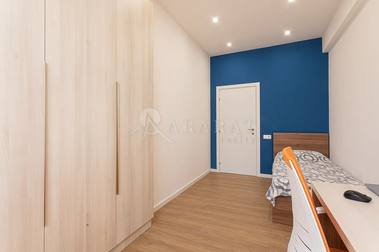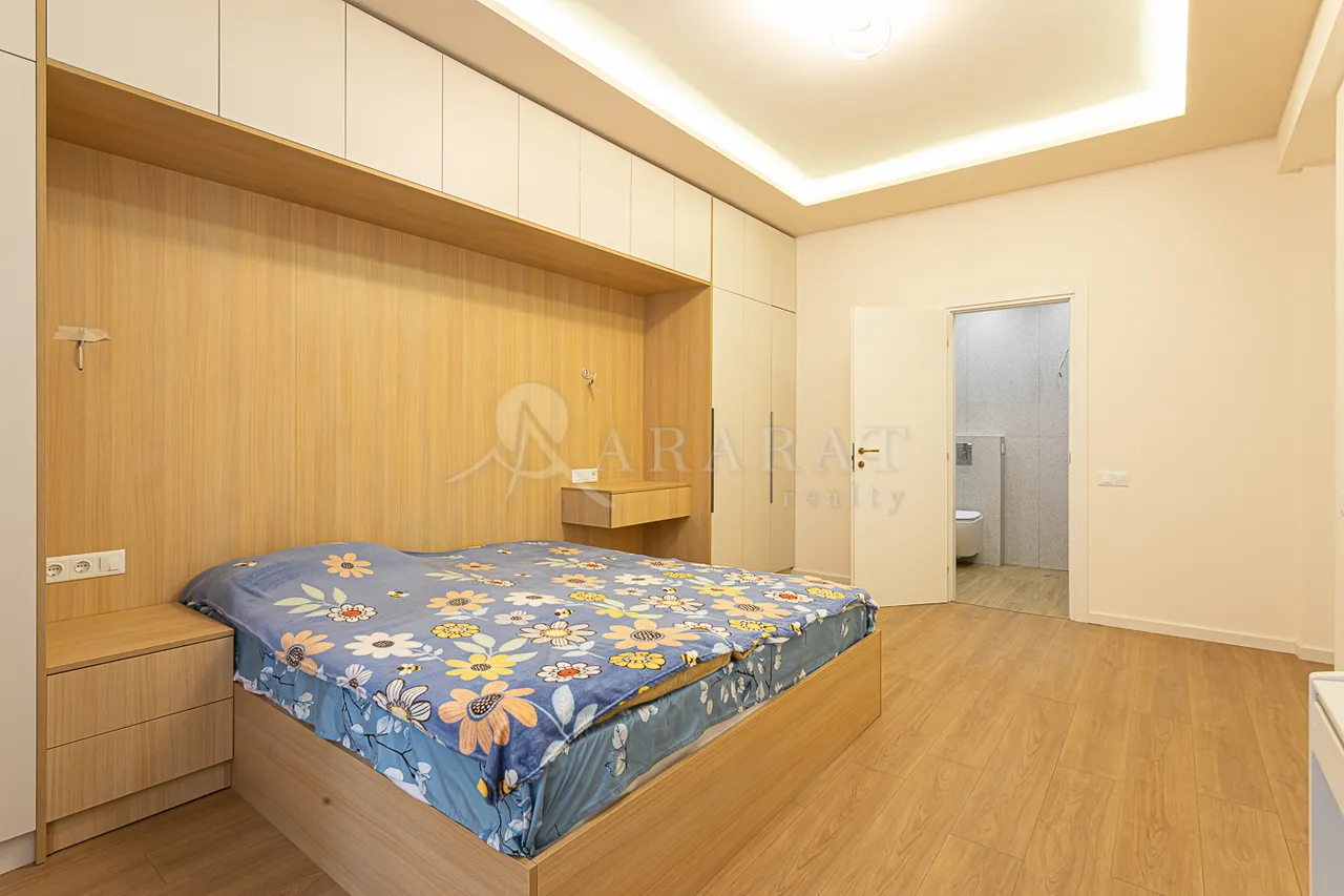 Վաճառվում է 5 սենյականոց բնակարան «Ճառագայթ» Բնակելի Համալիրում՝Ադոնցի փողոցում։ Բնակարանը գտնվում է 14 հարկանի նորակառույց շենքի 6րդ հարկում,որի ընդհանուր մակերեսը կազմում է 122 ք.մ․։Բնկարանը վերանորոգված է դիզայներական ոճով և կահավորված է որակյալ գույք-տեխնիկայով։Բնակարանը գտնվում է արևկող դիրքում,բաղկացած է՝ 3 լիարժեք ննջասենյակներից,որոնցից մեկն ունի սանհանգույց և բաց պատշգամբ,1 աշխատասենյակից,հյուրասենյակ խոհանոցի հետ միասին և բաց պատշգամբ,ընդարձակ նախասրահ,որտեղ առկա է ընդհանուր սանհանգույց։