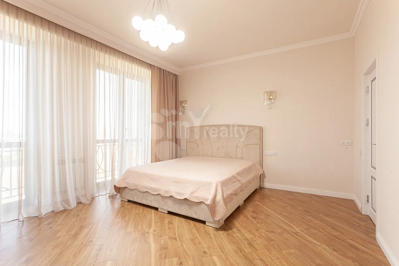 Բնակարանը գտնվում է 18 հարկանի պրեմիում դասի նորակառույց շենքի 5րդ հարկում, ընդանուր մակերեսը 123քմ է 3 սենյակ։ Լուսավոր և ընդարձակ հյուրասենյակը ապահովում է հարմարավետություն թե առօրյա, թե՛ հյուրերի ընդունման համար հյուրասենյակից դուրս եք գալիս դեպի մեծ բաց պատշգամբ, որտեղից բացվում է հիասքանչ տեսարան դեպի ձոր և քաղաքի համայնապատկեր։ Առկա է երկու ննջասենյակ որոնցից յուրաքանչյուրն ունի իր առանձին սանհանգույցն ու լոգարանը, նախասրահում առկա է ևս մեկ սանհանգույց հյուրերի համար։ Խոհանոցը բավականին հարմար չափերի է և հագեցած է անհրաժեշտ կահույքով և տեխնիկայով։ Շենքն ունի շուրջօրյա անվտանգություն, բարեկարգ խաղահրապարակ երեխաների համար։