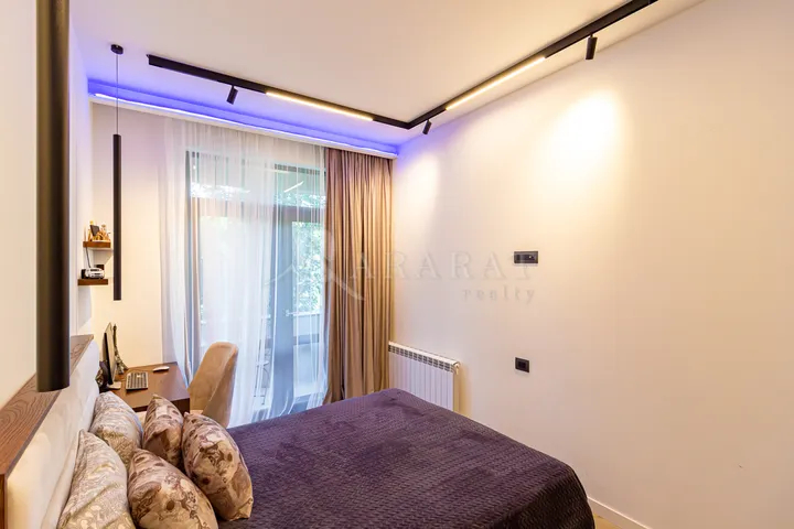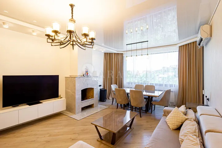Վաճառվում է ընդարձակ 5 սենյականոց շքեղ բնակարան Վ․Փափազյան փողոցում՝ այգու հարևանությամբ։Բնակարանն ունի մոդեռն վերանորոգում,գտնվում է էլիտար 15 հարկանի նորակառույց շենքի 5րդ հարկում։Բնակարանի ընդհանուր մակերեսը կազմում է 140 ք․մ․,որը վերանորոգված է դիզայներական ոճով նրբաճաշակ գույների մեջ,կահավորված է բարձրորոակ գույք-տեխնիկայով։Բնակարանը բաղկացած է ընդարձակ հյուրասենյակից՝վիտարաժային լուսավոր պատուհաններով,ինչպես նաև հյուրասենյակում առկա է մարմարե քարերով պատված գործող բուխարի,առանձնացված ընդարձակ և լուսավոր խոհանոց՝իր մոտ գտնվող հարմարավետ աշխատասենյակ և 3 ննջասենյակ,որոնցից մեկն ունի առանձին սանհանգույց և ելք դեպի գեղեցիկ բաց պատշգամ,ինչպես նաև առկա է ընդհանուր սանհանգույց-լոգարան և լվացքասենյակ։