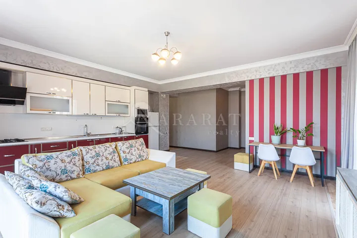 Վարձակալության բնակարան Մաշտոցի պողոտայում: Բնակարանը նորակառույց շենքում է, ունի անվտանգություն, 2 վերելակ, մուտքերը սպասրկվում են շուրջօրյա: Բնակարանը արևկողմ է, ունի 2 ննջասենյակ, հյուրասենյակ խոհանոցի հետ միասին, 2 սանհանգույց, բաց պատշգամբ և բնակարանի բոլոր պատոհանները վիտրաժային են: