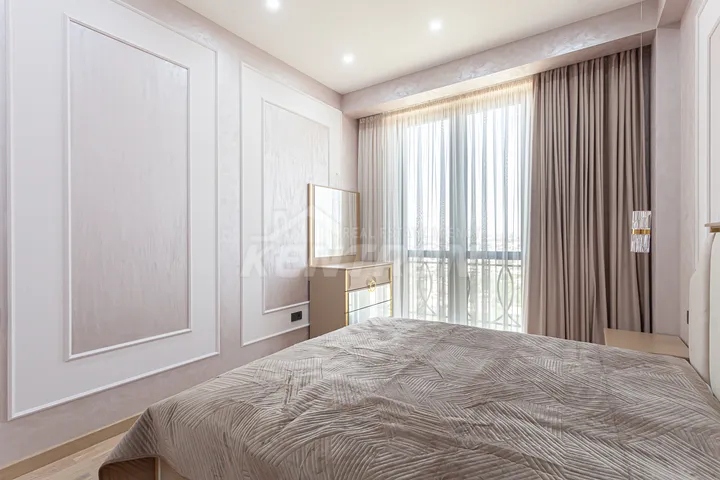 Բնակարանը գտնվում է նորակառույց շենքում ,ունի ժամանակակից վերանորոգում ,առկա է երեք ննջարան ,երկու սանհանգույց ,բաց պատշգամբ ։